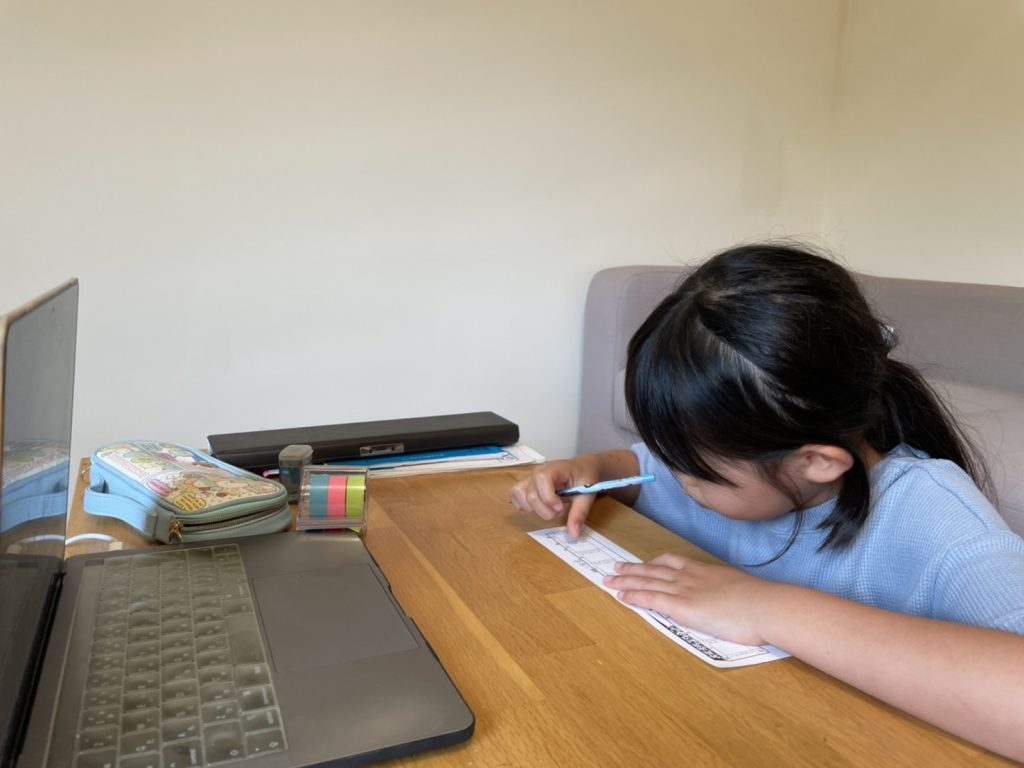 今日は2回目のオンラインレッスンでした! 途切れない集中力。結構正答率が高く、安心して見ていられました。 日本では、送り迎えしなくていいくらい近いところに通わせているので、本人の出来具合がわからなかったのですが、オンラインだとそれが見れるか... -
