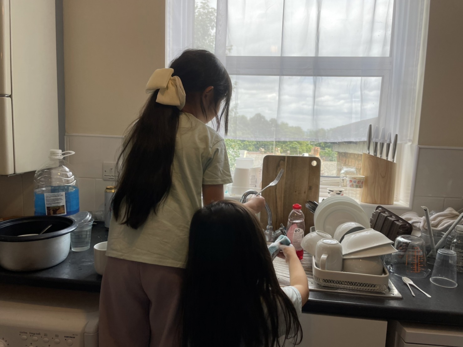 日本にいる時は、毎日早起きのたまちゃんが早朝に起きると、まだ誰も起きていないキッチンでこっそり洗い物をするのが秘密の楽しみだった…っていうことがあったね。グリム童話の「小人の靴屋」っぽいお話。