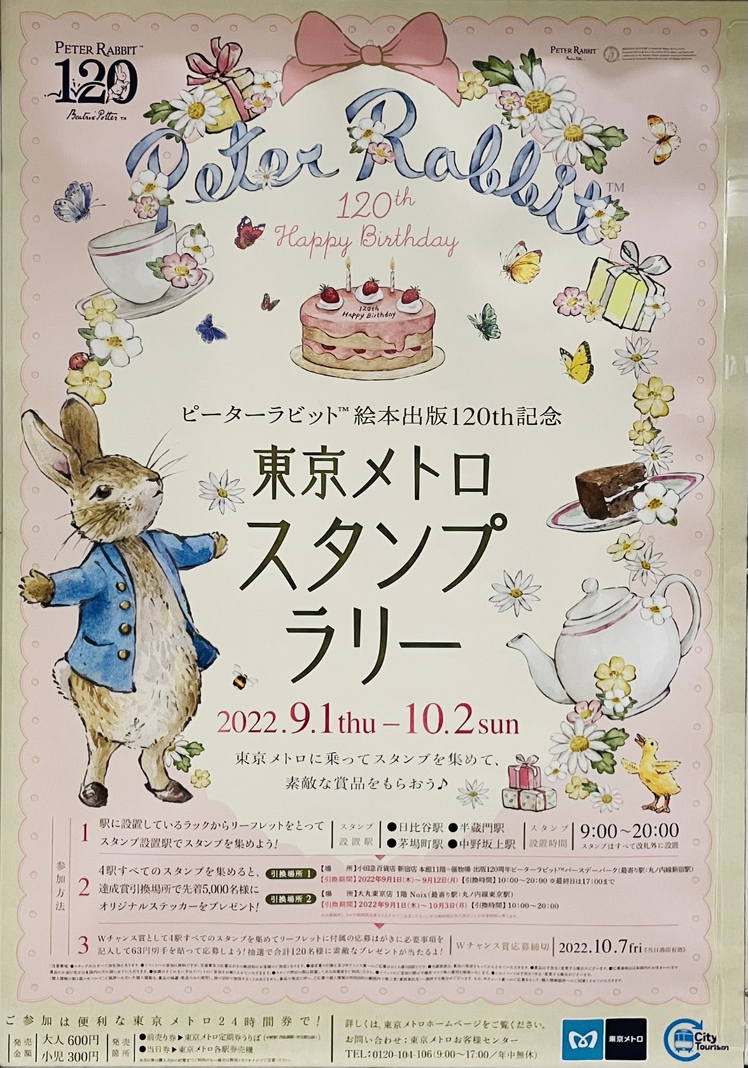 昨日から始まった『ピーターラビット出版120周年記念イベント』の、東京メトロスタンプラリー!