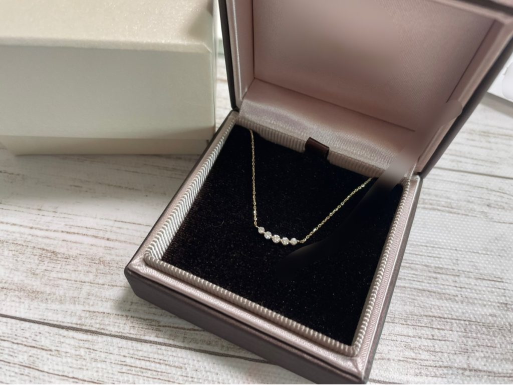 12年目の結婚記念日にパパからネックレスをいただきました! 結婚指輪を買ったお店のアニバーサリージュエリーで、五連のダイヤモンドのネックレスです。 仕事復帰祝いと誕生日プレゼントとして、去年同じお店で買ってもらったピアスと同じ色のゴールドに... -