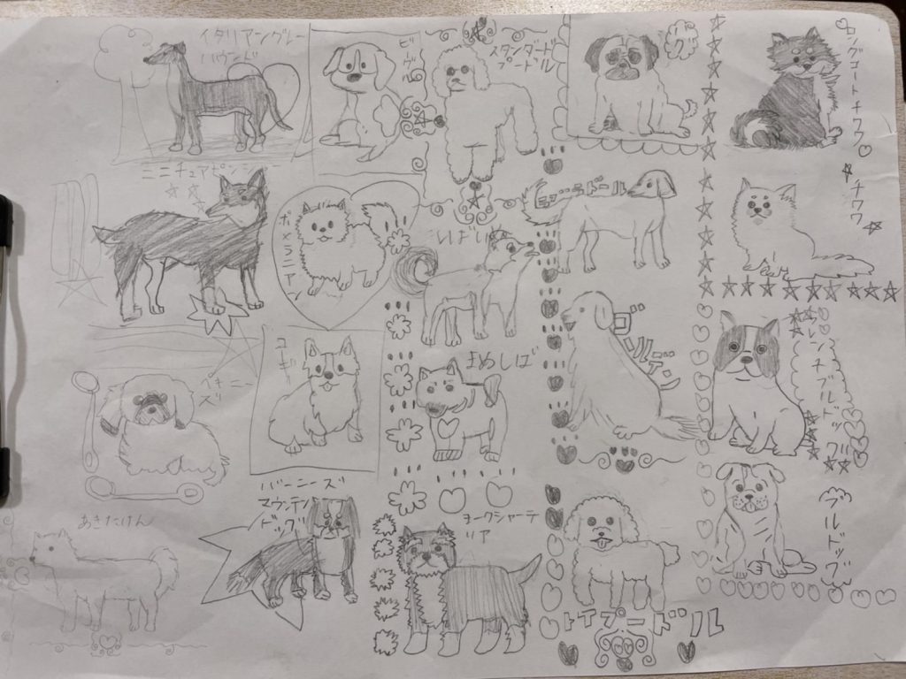 夏休みの自由研究に「DOG LIFE in UK」というタイトルでイギリスの犬事情を研究したたまちゃんなのですが、イギリス滞在でたまちゃんの犬好きがどんどんグレードアップしていて、こんなに絵が上手に。 行く前もこんなに上手でしたが、帰国後はこんな感じで... -